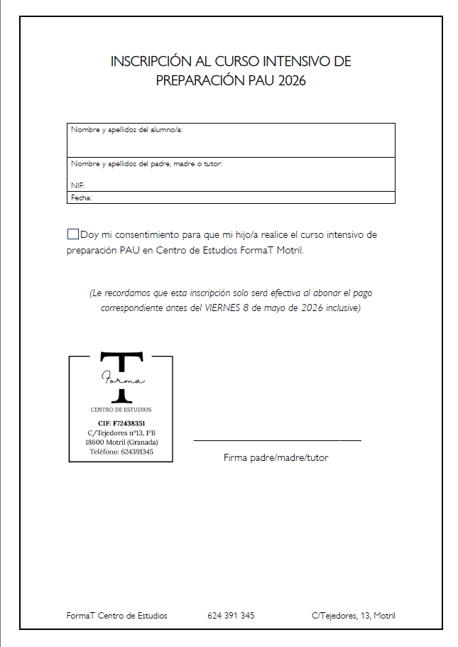 CURSO INTENSIVO DE PREPARACIÓN PAU 2026